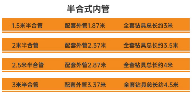 常用的半合管單動(dòng)雙管鉆具規(guī)格:Φ75、91、110